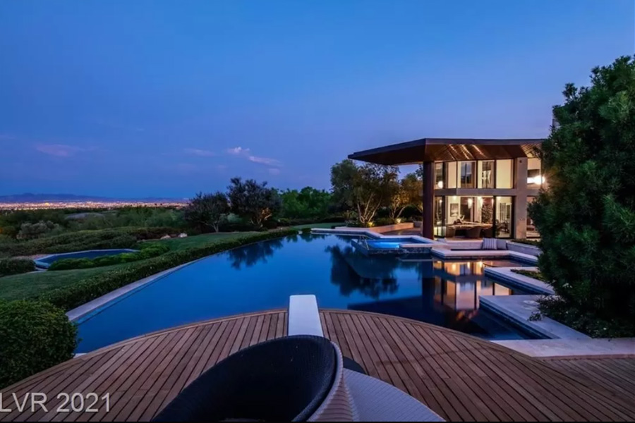 The mansion, located at 5 Promontory Ridge Drive in The Ridges – a wealthy master-planned community in Summerlin – is described as a “desert contemporary masterpiece,” comes in at 10,621 square-feet in size, is fully furnished, and features six bedrooms.